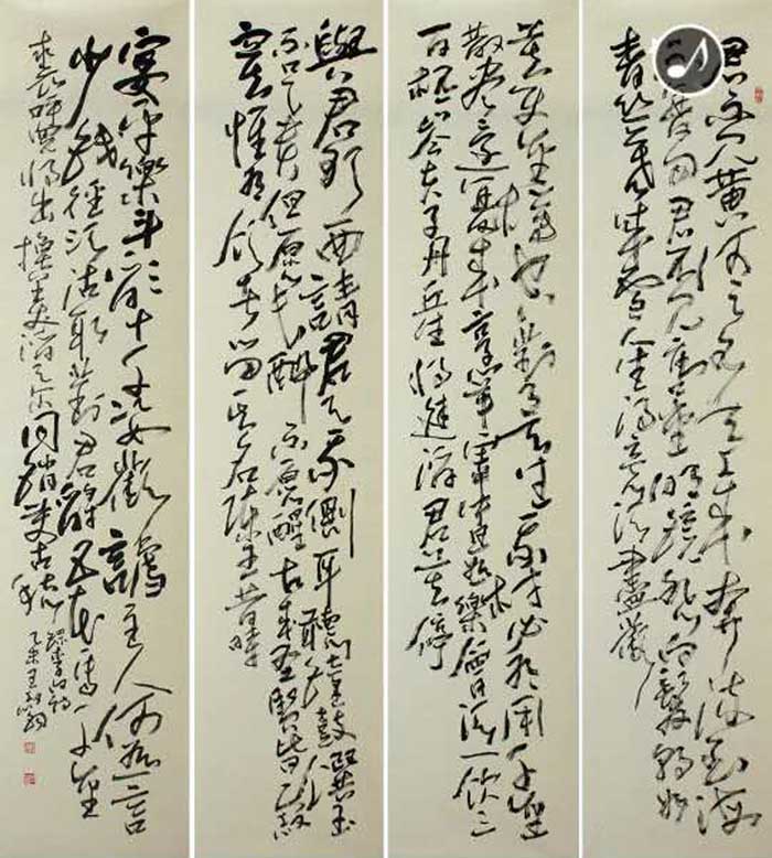 特别是榜书将画里融进书法中,书中有画画中有书,情境自然,引人 遐想。它的 魅力在于气韵通畅,在于雄浑老辣,在于寄情于点画之间,这正迎合了中国书法的审美要求,因而有强大的生命力,有丰富的哲学内涵,有完美的 自然情味。其作品充满勃勃生机,充满作者对自然的 感悟与生命的律动,充满了对美好未来的期待与不可动摇的人生 信念。他的作品表现了一种实实在在的作风,是一种不造作的淳朴自然的风格。
