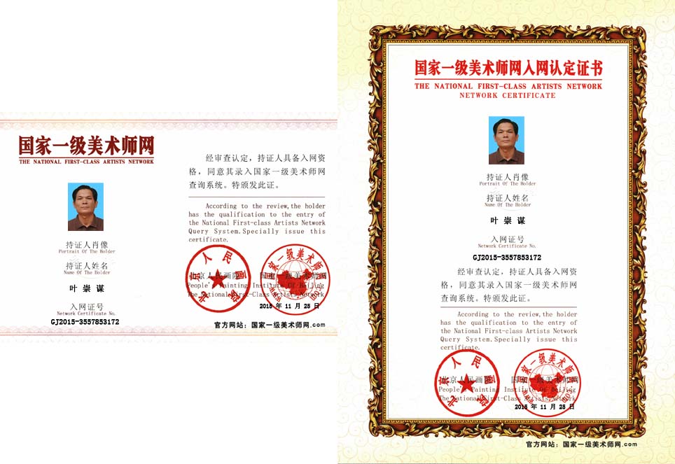 叶崇谋,别名叶成舟、劲舟,1971年生,广东省海丰县人,现定居深圳。早年肄业于赣南师范学院艺术系,1996年毕业于北京建设大学美术设计学院,师益于袁运甫、钱绍武、李燕、朱曜奎、黄能馥、蒋峰等名师,北京人民画院艺术家、大潮汕书画院副院长、香港书画院特聘画家、国家一级美术师。作品或艺术活动见诸中央电视台、深圳电视台、汕尾电视台、宝安电视台、《中国书画报》、《中国贸易报》、《深圳晚报》、《汕尾日报》、《宝安日报》、《特区教育》等媒体,并曾在北京中国美术馆、北京劳动人民文化宫、天津国际展览中心以及韩国首尔、美国洛杉矶等地展出, 2011年第26届世界大学生运动会在深圳开幕之际,美术作品参加市府相关部门招标被选用,绘于龙岗深惠路主干道茂业城的墙面上,荣获“2013年度百名作品最具收藏潜力艺术家”荣誉称号,2014、2015年作品被邀献礼全国两会,出版有个人作品集及为多种图书绘制插图。