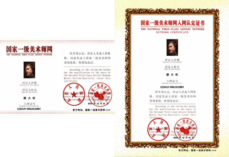 游火旺,别名江,号玮埔铁匠,1952年12月出生于福建清流。先后就读于福大工艺美院和中央美院国画系进修班。现为三明市“专家一带一”导师、中国美术家协会会员、中国工艺美协书画委员、国家高级美术师、西安美院国画系特聘教授。