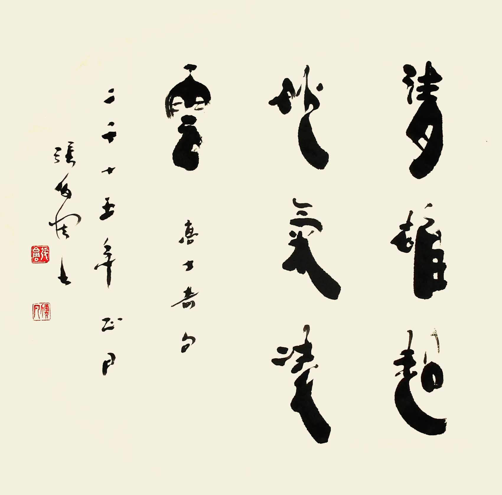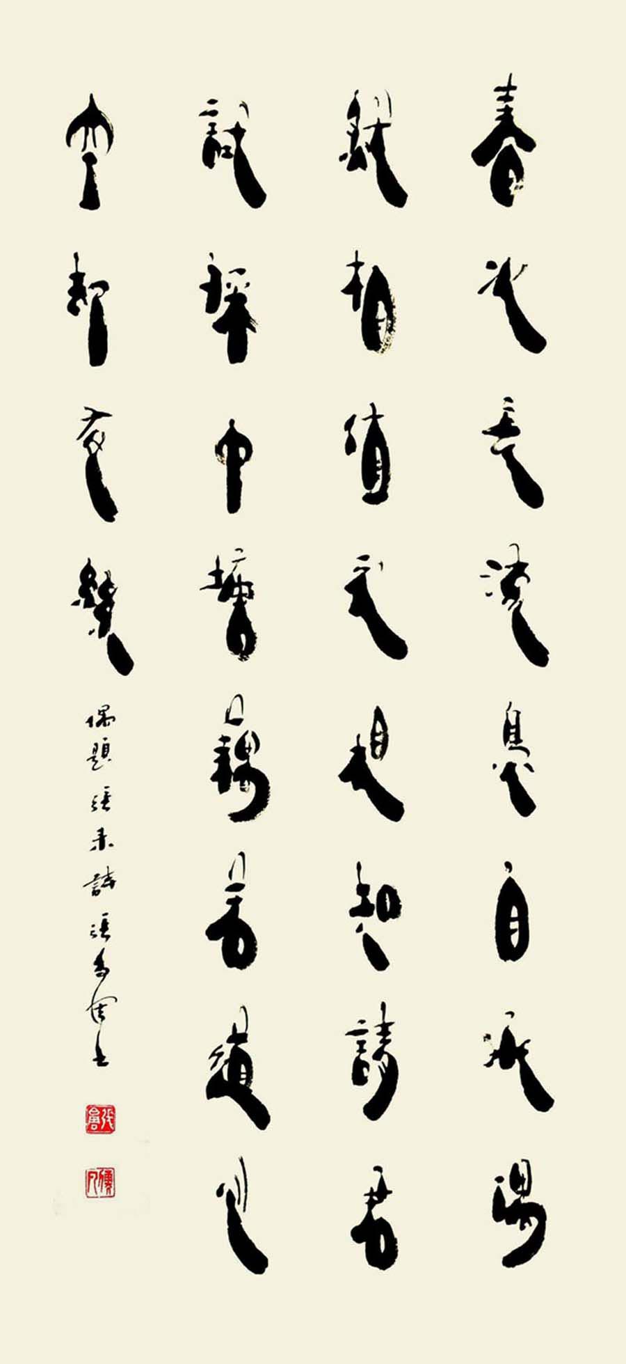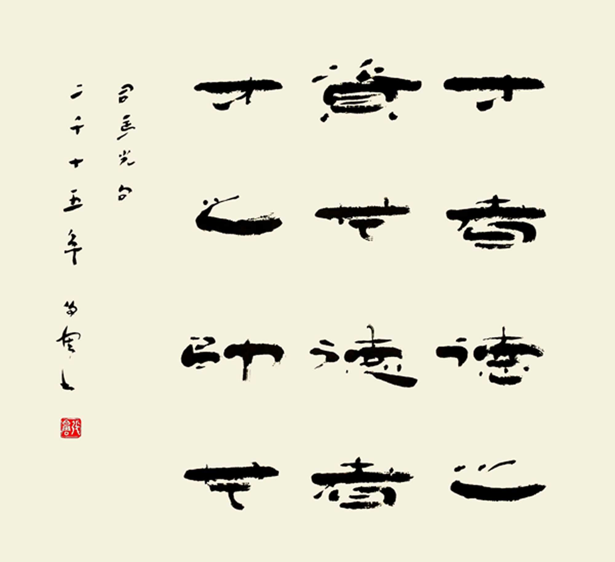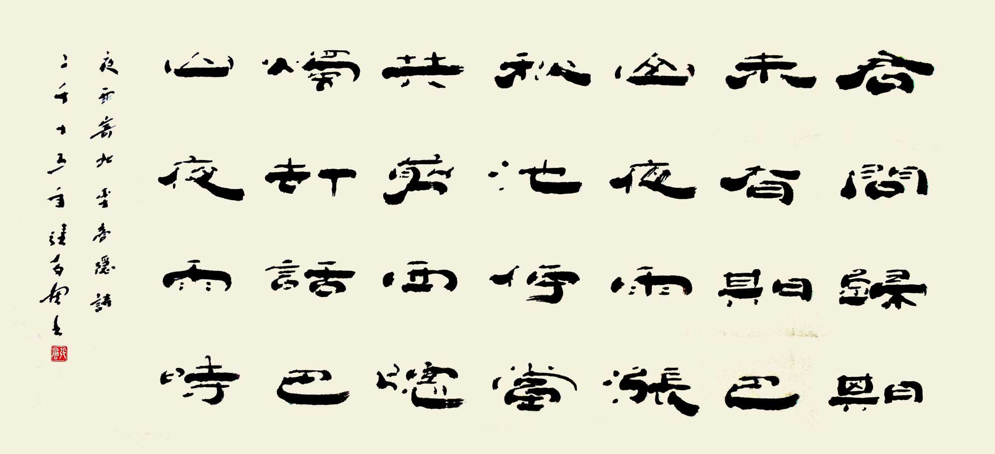 书法以学篆书,隶书,楷书三体,尤以隶书创作为主。篆书以金文及小篆得其笔力,则以《天发神谶碑》最为欣赏。后主攻隶书,《曹全碑》等汉碑.汉简。众观古今书法。