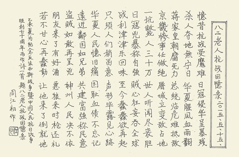 2015年参加北京中艺博雅科技文化有限公司主办中华世纪坛美术馆协办的国粹苑“翰墨中华•国粹经典”书画艺术展,得到书画界领导和专家教授的好评,特发荣誉证书以作奖励。