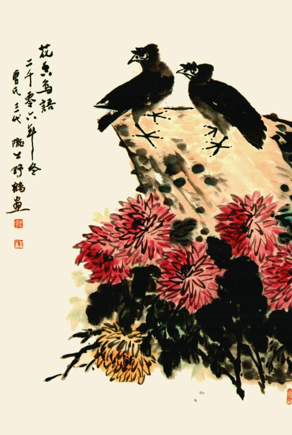 六十年来,艺海泛舟,沉醉于传统的博大精深,忘情于造化的钟灵神秀,朝夕研摹,寒署不缀。创作具有明显的个性,作品酣畅淋漓,开合之迹渐近自然,笔墨苍健秀润,“变他法为吾法”已形成了自己的风格。尤擅花鸟,二幅“花鸟”作品被中南海珍藏,其作品在香港、台湾、新加坡、日本、韩国、美国等均有收藏。