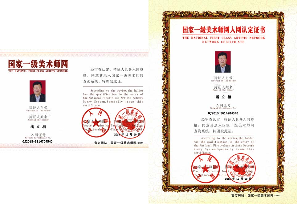 潘立相,男,汉,1955年6月生于河南杞县,号,琴心剑胆,退伍军人。在新疆军区某部文化干事,书法作品多次得奖。1996年在杭州召开全国中华绝技艺术博览会书法大赛一等奖。2013年在台北书法赛中荣二等奖。2000年被载入《中外名人辞典》《东京风华录》《中国跨世纪领导人才库》。2012年7月27日上中央电视台、新华网、华人频道《高端访谈》节目。2013年河南电视台、开封电视台专题报导。2014年《河南科技报》专项报导。2015年《开封尚》杂志封面1、2页。2003年被评为德艺双馨艺术家、河南省非物质文化遗产传承人等荣誉称号。