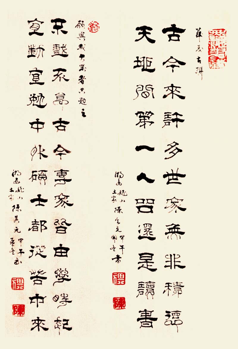 陈其元,号若愚,1946年农历9月生于湘西龙山县城一个世代忠厚之家。其兄妹众多,行序为五,家境不殷。幼承祖训:勤善为本,立志成才。自入黉宫,好学成癖,诗书名卷,爱不释手;民乐民歌亦有独钟。初萌习于博学多才的老夫子——孙中山时期龙山县县党部师爷、县印刷厂首任美工——夏舟帆先生门下(可怜的老人因“文革”清洗,革掉公职,人格受辱,推入绝境,二老双双上吊自刎)。后拜习于著名书法家欧阳允文尊师,深得其墨宝精髓。我的岳丈周学开老先生,曾任龙山县首任文化馆馆长,因见运动连连,于1956年辞职入北京中央美院就读,毕业后返龙山文化馆从事绘画专业,成为我允文老师一写一画的老搭档。1985年,我从全国石化系统唯一挑选进京,在刚从石油部分出的中国石化总公司机关,从事书写工作的几年里,又深造于北京书法部主任欧阳中石大家。
