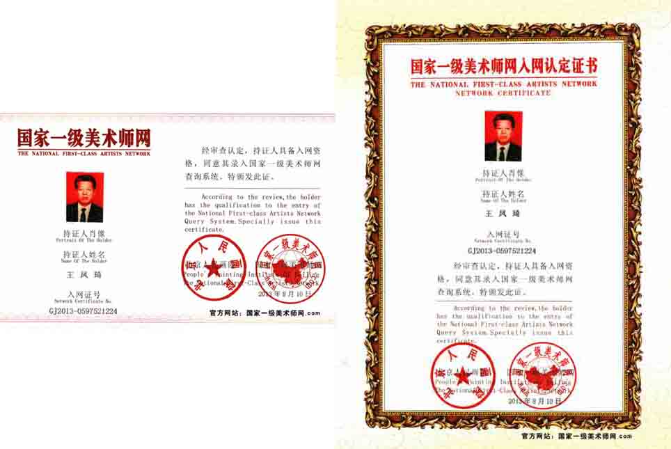 王凤琦,教授,男,汉族,出生于1943年12月29日。山西太原人。北京师范大学。现在天津东丽艺苑阁任职。社会兼职聘为吉林省文融艺术研究院名誉院长,客座教授,济宁市中华民族艺术研究院研究所研究员、教授,华夏国际书画家研究院理事,会州书画院学术委员、编委,(北京)东方书画家协会会员,中国硬笔书协会员;中日书画家协会会员,海内外书画家联谊会会员,江都书画院常委,全国诗书画影大赛评委等。多年从事工艺美术,古建筑,建筑装饰装修及屏风牌匾职业。书画作品被海内外收藏。近年入选《当代书画名家作品集》、《世界华人书画家大辞典》、《当代书画艺术名家精英大典》、《当代书画艺术名家金鉴名录》、《世界书画家铭录》、《世界当代著名书画家真迹博览大典》、《中国中青年书画艺术家作品荟萃》、《20世纪书画名家作品精萃》、《跨世纪翰墨艺术家作品润格》、《跨跨世纪中外翰墨艺术家万人通讯录》、《跨世纪翰墨艺术家作品撷英集》等,书法作品参加省届中国书法艺术节。1997香港回归中国书画大展赛喜获“银奖”,1998当代书画名家作品邀请展喜获“精品奖”,第二届中国书法美术家精品大赛喜获“银奖”。个人荣获《当代书画艺术家》、《世界华人书画艺术家》和《国际书画艺术家》等荣誉称号。著名画家爱新觉罗,溥佐赞誉:“屏风牌匾雕刻世家”,著名学者李墨生欣然命笔:“牌匾王,艺术之光”。