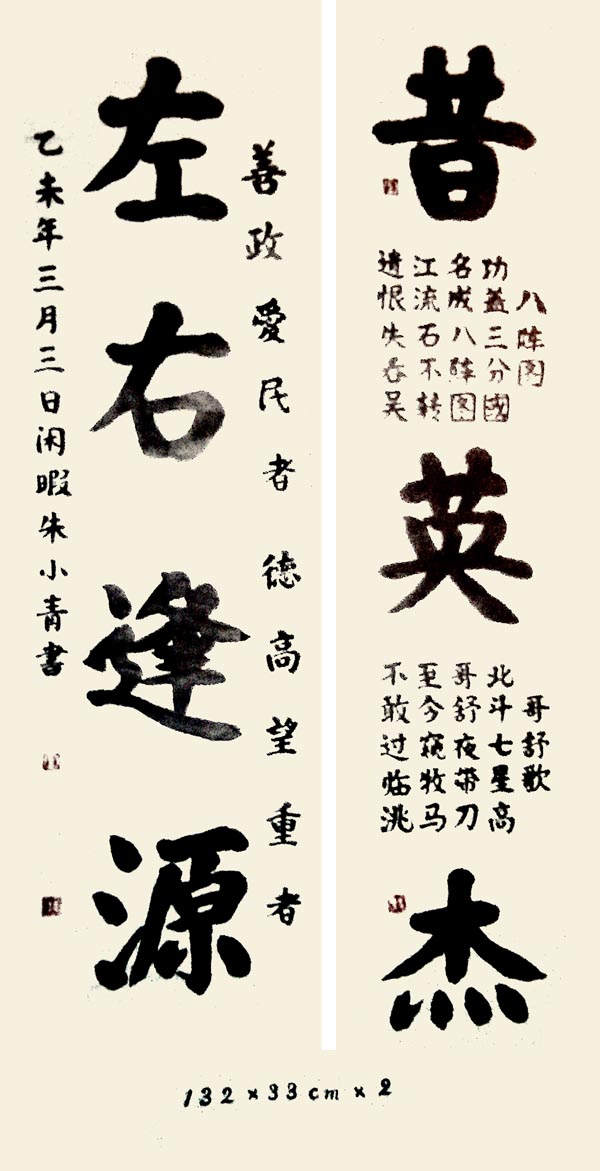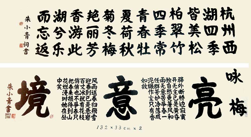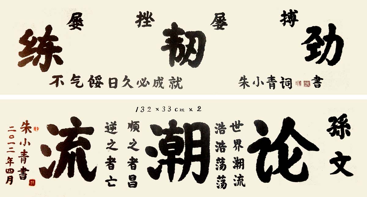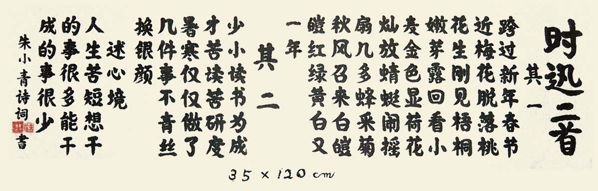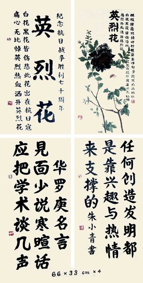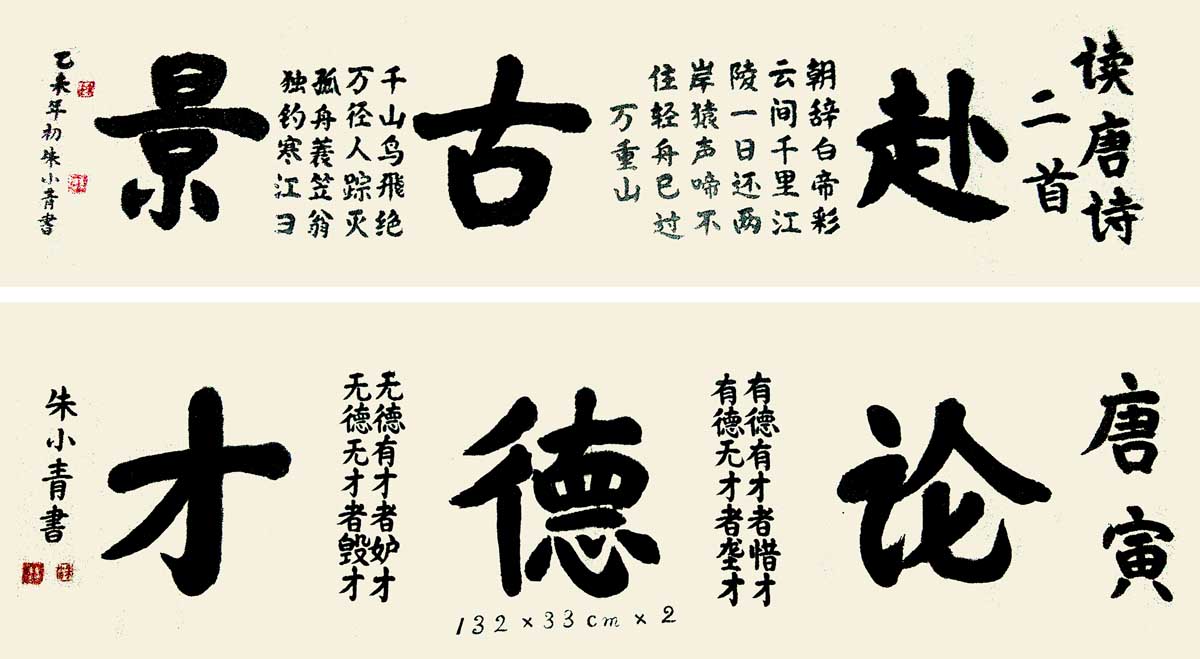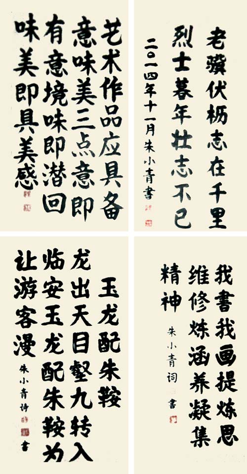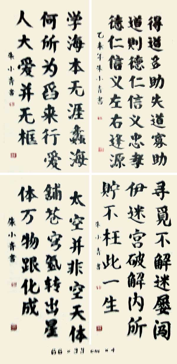 朱小青,1943年5月生,杭州人,1963年杭州高级中学毕业。辍学后随父学习织印花图案设计、黑白稿,指导阅读相关书籍:美术期刊、怎样画毛笔画、芥子园画谱。绿柳公权字帖打好字的骨架基础。1966年进杭州庆群印花厂搞图案设计及制版工作。从此开始热爱上艺术创作。