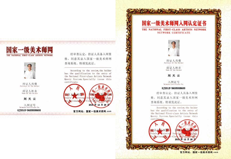 刘天云,号金山居士,1959年生,山西省忻州人,中国书画函授大学85届学员,国家一级美术师、中国书画研究院院士、中国书画摄影家协会理事、卓资县美术家协会名誉主席、卓资县书画艺术研究院副院长。