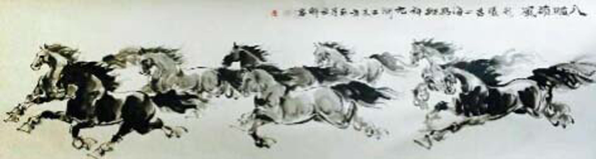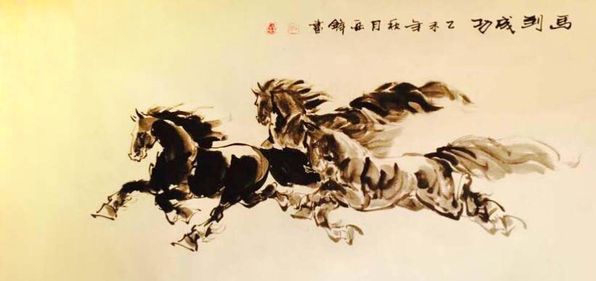 岳锋,幼承家训,遍临古今名家碑帖,在传承古人艺术精华的同时,更做到师古而不泥,进退有度,法度俨然,在具有古人风貌的同时,更展现出独特的个人气息岳峰大师在精于书法的同时,更擅长泼墨画马,并完美传承了一代宗师徐悲鸿先生的艺术精髓,其用笔大胆奔放,气象雄浑,线条流畅自然,笔笔传神,其作品更是栩栩如生,骏马良驹,跃然纸上,堪称自悲鸿之后,不可多得之画马传人。
