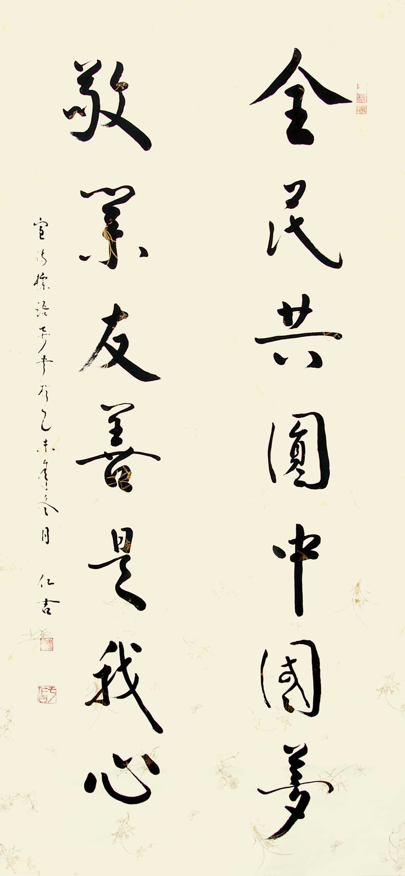 2011年,两幅书法作品悬挂在人民大会堂(110×330)