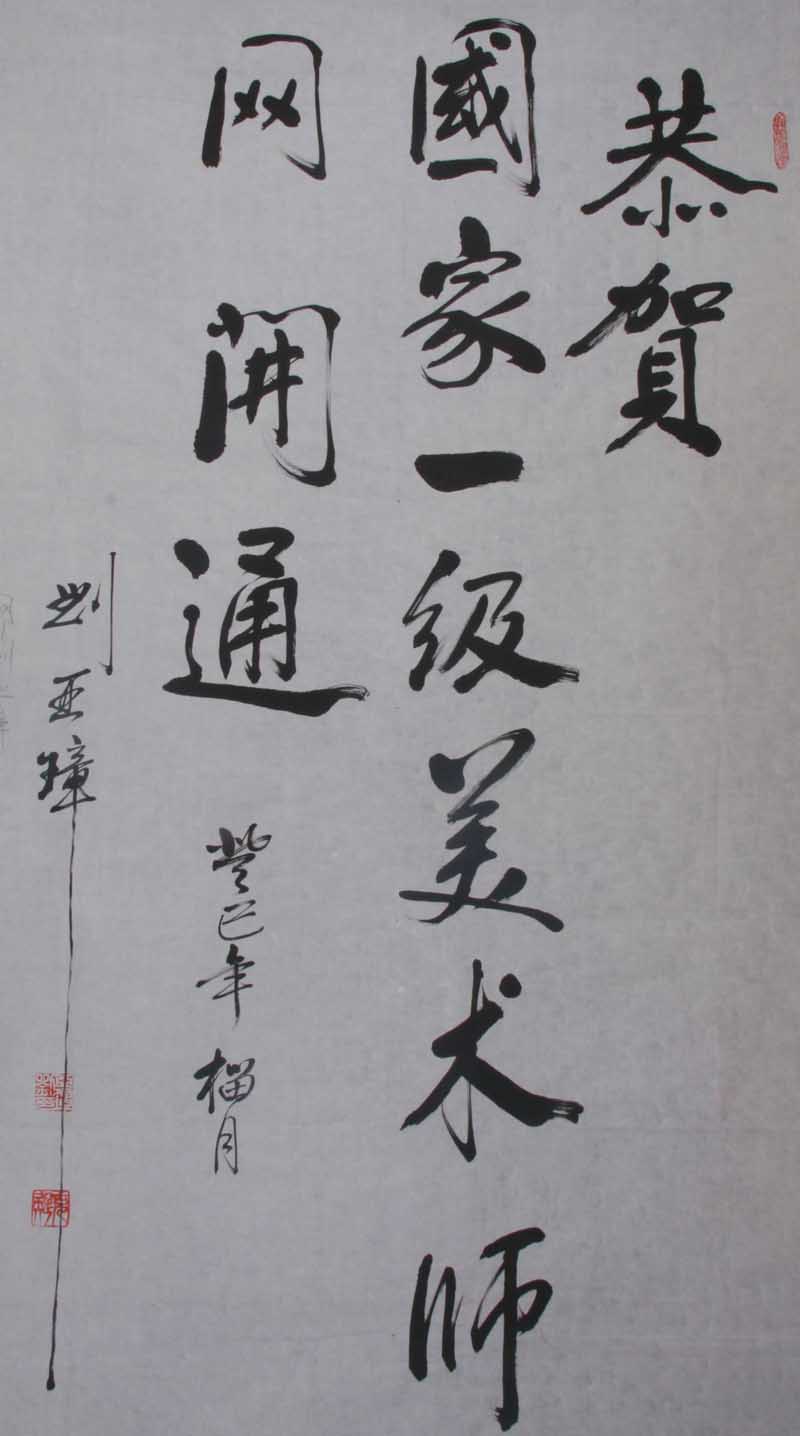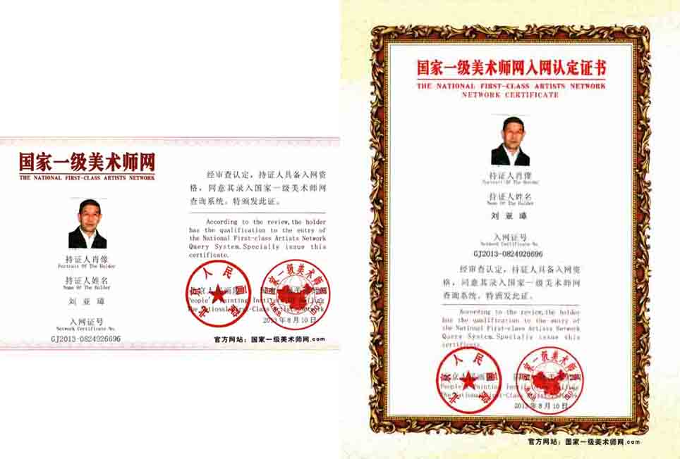 刘亚璋,字克疑,又名重瑚,号布衣山人,甘肃静宁人,中共党员,初中文化,无锡书法艺术专科毕业,1945年1月出生于书香之家(祖上二代都教书育人,好书法,父亲刘宗健,字绍武,祖父,刘青黎,字乙庵,附作品照片),小时受父亲的熏陶,喜爱书法,临池不辍,1961年回队劳动至改革开放,现为中国人才研究艺术家学部委员会二级书法艺委、国际知名文艺家、当代百名优秀文艺家、世界人民团结友好使者、当代著名红色艺术家、全国杰出文艺家等称号、寿文化书法百家、中国当代书画名家“中韩文化大使”、桂林炎黄书画艺术研究院院士、中国现代书画、名家名作编辑委员会特约委员、中华现代书画家联谊会副会长、吉林跨世纪文化艺术研究院副理事长、江都书画院特聘高级书画师大方科文社签约艺术家、湘江文化艺术家协会会员、甘肃书画协会会员、甘肃农民书画研究会会员、会州书画院特聘学委员、平凉市老年书画协会常务事理、伏羲书画社会员。书法作品从1996年开始多次在国内大展赛中获一、二、三等奖及金奖;2000年获世界华人艺术大展嘉奖,2001年获中华人民共和国文化部批准、国务院发展研究中心、国家环保总局等单位颁发的国粹奖入选奖;2003年春为抗击非典捐赠作品,2004年获庆祝建国五十五周年书画联展一等奖,2005年1月应邀出席北京海内外杰出人物新年座谈会;2006年文学作品入编“精彩人生”一书,2008年为奥运会捐赠作品、2010年被授予“国际知名文艺家”称号和水晶印一枚;2011年获首届中国名家“红色经典艺术成就奖”,2012年获“全国杰出文艺家终身成就奖”、“中华寿文化书法百佳”;从2006年开始,村上组织和玉泉同志承办起利用村上的庙会宣传祖国的传统文化,举办传统文化作品交流展,并请来县上的书画名家会聚一堂,交流书法、绘画,使更多的老百姓能看到祖国传统文化的博大精深,年年如此。作品入编当代书画名家作品集,二十世纪著名书画家、中华人民共和国书画名家作品等、世界华人艺术精品典藏、中国书法选集、中国当代书画家润格大典、新中国书画60年、第四届加拿大中华诗书画大展作品集、国际知名文艺家大典、中国书画名家大辞典、甘肃当代书画艺术典库第三卷、中华寿典等20多部书籍。传略入编中国专家人才库、中国名人辞典、世界名人录等,上世纪90年代省、地、县电台、报纸作以报导,2004年中国书画名家作编辑委员会认定书法作品每平方尺不低于国际售价贰佰美元,绘画作品每平方尺不低于伍佰美元,作品被国内多家画廊,学校及个人收藏,以行草见长,四体皆书。