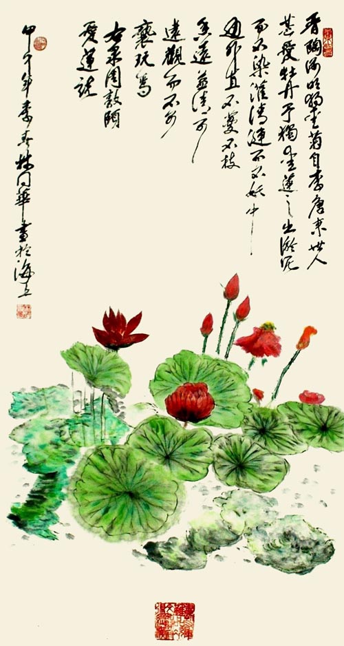 林同华,1940年生。广东潮州市人。现任宋庄国际艺术书画院终身院长、中国国家诗书画院常务副院长、上海交通大学人文学院兼职教授。六岁开始在书法家祖父林君素(1890-1970)指导下练习欧阳询书法。二十岁,周扬(1908-1989)受郭沫若(1892-1978)委托,在广州接见,表扬其提出用恩格斯(1820-1895)“流动范畴”分析美学的各种流派是一个发明,二十三岁以满分考上宗白华(1897-1986)导师的中国美学史研究生。三十岁开始在岳父夏意超(1903-1979)指导下学习绘画,四十岁开始向张安治(1911-1990)、谢稚柳(1910-1997)、伍蠡甫(1900-1992)、俞云阶(1917.—1992.)、程十发(1921-2007)等学习书画篆刻。美学著述有《中国美学史论集》《美学心理学》、《宗白华美学思想研究》《审美文化学》、《超艺术:美学系统》、《中华美学大词典》、《圆梦:<红楼梦>密码———献给我的美学导师郭沫若、周扬、宗白华先生》等。主编、整理、注释演绎作品《宗白华全集》(1994,安徽教育),获第二届国家图书奖(1994)。其事迹已列入:《国际名人传》英国剑桥名人中心-第24版、《世界名人录》、《中国当代名人录》等。2013年,与上海交通大学人文学院院长王杰共同提倡“美:流动幻象”的新理念,并以其艺术作品实践其美学思想。其绘画作品,演绎吴昌硕、齐白石、徐悲鸿、林风眠、潘天寿、夏意超、张大千、张安治、沈柔坚、谢稚柳、程十发的色彩烘染与骨法用笔,创造独特的中国流动幻象色彩画新风格,出版有《中国艺圣:启功、吴冠中、林同华作品集》等。收入《中国艺术百年》、庆祝中华人民共和国建国60周年《艺术人生•中华艺术名家》个性化专题邮票发行纪念、《世界文艺精英榜》《光明日报•新闻人物》等,富有独特审美韵味,为各国友人珍藏。作品获得首届中国诗书画艺术百花奖金奖。