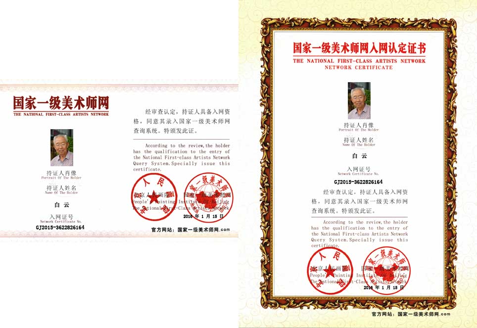 白云,1942年生,山西大同市人,中共党员,大专。历任教师、校长、书记。在教育战线上成绩卓著,德高望重。曾三次被国家授予"全国优秀教师"荣誉。受到老一辈革命家、国家领导人王任重、宋任穷、方毅、康克清、蒋南翔等接见。事迹入编《中国当代教育家大辞典》、《全国校长大辞典》、《中国专家大辞典》、《中国专家人才库》、《世界华人英才录》等。在绘画艺术道路上不断努力探索,潜心作画,一幅幅心血凝聚的作品在八、九十年代参加国内外书画展多次获奖。进入新世纪创作的国画作品受到国内外的好评和赞誉。参加国内外书画大赛多次获金奖、如:庆祝中华人民共和国成立五十、六十周年美术作品展获得金奖、银奖、纪念红军长征胜利七十周年美术展获银奖、纪念中国电影百年当代名家书画展获最佳优秀奖、庆祝香港回归十、十五周年书画邀请展获金奖、受邀参加北京奥运会主委会举办的名家书画创作笔会创作的“美好河山喜迎佳宾”获特别金奖、受北京迎奥运会主委会邀请创作了十六幅国画作品、参加国内外巡回展,有的作品作为礼品赠送外国贵宾。中国、迎世博会公益书画展获银奖、伦敦奥运之旅中国当代书画艺术展金奖、受邀参加“第十六届达芬奇”国际艺术大赛获金奖,纪念毛泽东同志诞辰一百二十周年书画创作大赛获特别金奖。2013年由新华艺术网、中国艺术人物网,中国书画名家研究会等网络联合举办的"美丽中国—2013年度最受人民欢迎的艺术家网络投票评选活动,历时半年投票评选进入第10名被授予“最受人民欢迎的艺术家”荣誉。2014年度中国艺术金马奖,被评为2010年、2011年2012年2013年感动中国艺术人物、部分作品在北京、上海、郑州、香港等地展出。应国内外书画艺术组织邀请多次参加出国展和艺术交流。如“中国对外交流书画精品巡回展”、中埃文化艺术交流展.中印文化艺术交流展、中国书画名家作品英国展、中日书画精品交流展、意大利中国文化年艺术巡回展等。绘画作品被国家博物馆、中国国际交流促进会、世界华侨华人社团联合总会、新疆伊犁市人民政府等国内外多家艺术展馆和书画组织及社团个人收藏。国内外数十家艺术组织授予“世界杰出华人艺术家”、“德艺双馨全国二十位国画家”、“共和国杰出艺术家”、“影响世界的中国当代书画艺术名家”、“共和国杰出艺术家最高荣誉成就奖”、“中华当代杰出慈善艺术家”等荣誉。其艺尤简介和国画作品入编《世界名人录》、《世界美术集》、《世界艺术通史》、《百年一中国美术全集》、《传世名画一中国当代著名画家珍品》、《走向世界的中国当代书画艺术名家大典》、《当代中国画市场投资指南》、《中国书画收藏最具投资价值二十位艺术家》等四十多部书典。出版有《白云山水画作品集》、《当代艺术名家一白云作品集》、《中国当代艺神黄永玉、白云双人集》、《中国艺术功勋人物一著名书画艺术家白云专集》、《国家文化传承人物一白云专集》。现为国家一级美术师、中国国画家协会理事、中国画家协会理事、中国国画院山水画创作委员会副主任、中国国际画院副院长、中国书画名家研究会副会长、中国数字艺术馆馆长、新华网网络美术馆副馆长、宋庄国际书画院院长、北京中国书画研究院荣誉院长、中华艺术大黄页执行主编等十多家书画组。