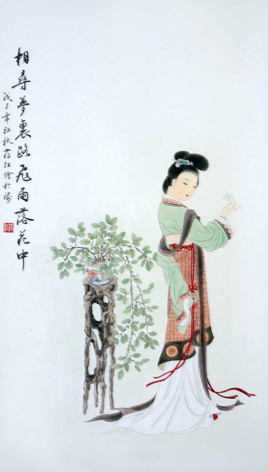 蒋红,1966年11月生,重庆人。毕业于四川美术学院绘画系,四川美术学院研修班再次进修提高。现为重庆美术家协会会员,中国国画家协会会员,重庆市九龙坡区华岩寺禅画院画师、重庆市九龙坡区墨宸书画院副院长。被国家授予“书画艺术界杰出人才”称号。其个人作品和所辅导学生的作品多次在各种报刊、杂志上发表,并在各级各类比赛中获奖和展出。蒋红最擅长中国花鸟画和工笔仕女画,作品中充满着对大自然的热爱,善于将丰富的情感表达于画中,雅俗共赏,喜闻乐见。作品充分体现了中国花鸟画的精髓,娴熟的绘画技巧,独特风格,深受好评。诚如印度诗人泰戈尔在《飞鸟集》中的诗文所言:“使生如夏花之绚烂(Let life be beautiful like summer flowers)”,我愿我的绘画作品带给大家一个“像夏花一样绚烂而美丽”的精彩世界