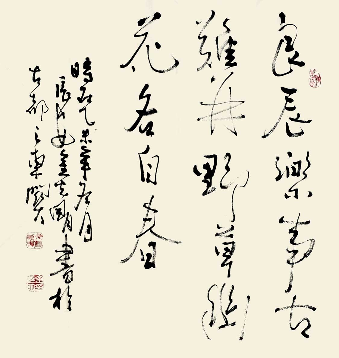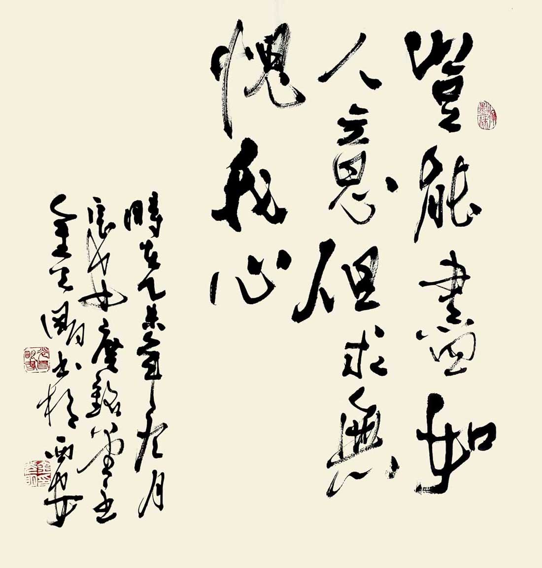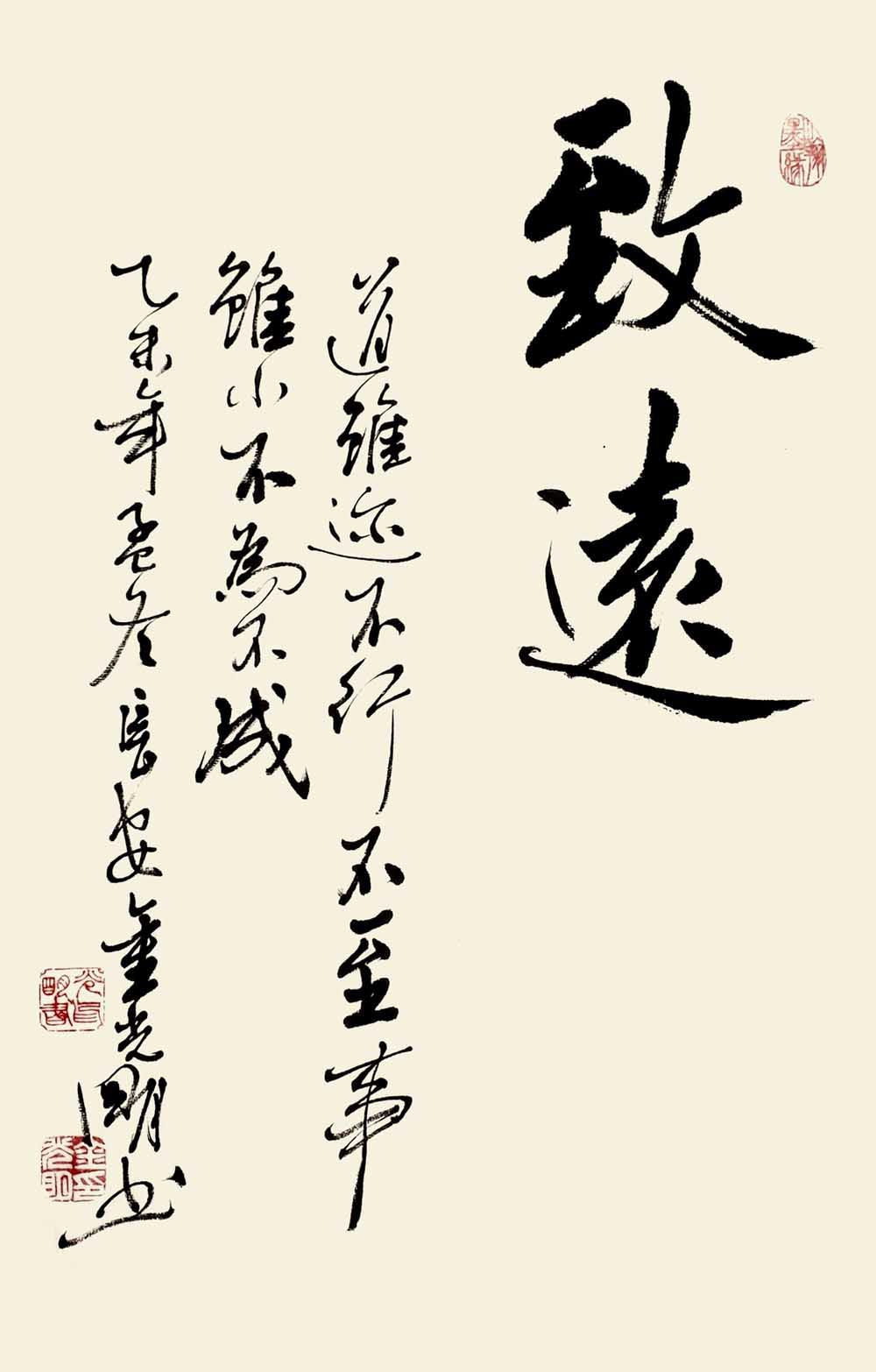 对于光明在书法艺术上日益显露出的出色才华和成绩,书画界的许多前辈名家和朋友们都给予了充分的肯定和赞赏,但他自己却表现得比较淡然,从来也没有功利方面的考虑与追求。正如他常说的那样:都是写着玩儿的。他为书法艺术付出了许多时间和精力,但书法也带给他许多精神的慰藉、艺术的愉悦、创作的快乐、诗意的情怀,以及以书会友时良师益友之间的艺术分享与真挚情谊。人生有涯而艺术无涯。在此,我也真切地祝愿书法艺术能给光明带来更加丰富和美好的艺术享受和别具一格的生命体验。