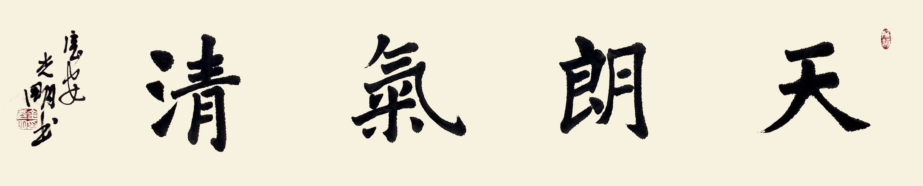 从总体上来看,光明的书法作品,体现出浓厚的中国传统文人书法的审美意境和精神气质,比较耐看耐品。近年来,他陆续创作出一批不同题材、不同书体、不同风格、不同形制的优秀书法作品,既有常见的行书、行草条幅,也有斗方、扇面之类的小品,还有气势雄阔的长篇六条屏和十米长卷。这些作品,或飘逸洒脱,或流丽清秀,或疏朗淡远,或奇崛苍劲,或古拙风趣,等等,给人带来丰富多样、精美高妙、韵致独具的书艺感受和审美愉悦。这也充分展现出光明书法艺术上深厚的笔墨功底和充沛的创作能力,以及多方面的艺术才华。