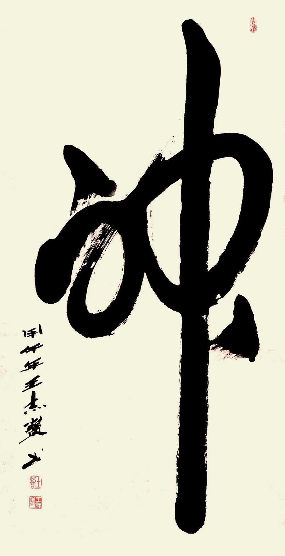 笔者在了解了王杰宝先生的人生经历后才知道,王先生本就是修善佛道之人。他曾在闲暇时云游名山古刹,拜名师,佛道高僧大德,从禅、净、秘藏中得到感悟,受到点化。再从古老的道家文化里得到启发。他不仅在书法研习上博览众家之长,提高自身素养,还在闲暇时观摩智慧瑜伽,从优美的动作中得到灵性启迪,感受无限超常的愉悦,进入纯粹的心神合一之人格境界。亦难怪能从其作品里感受到庄严沉厚与静远超然。王杰宝先生一生从事过工农商学兵多种行业,并最终从公务员职位上退休。履职期间,不论在学校、在工厂、在部队、在地方,他都始终对书法艺术耕研不辍。