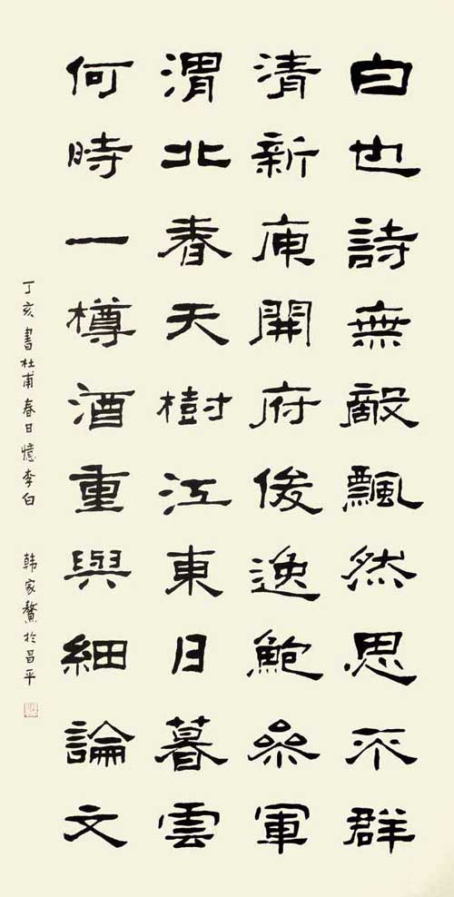 1946年在上海师从书法家李健(李瑞清胞侄、传人)习篆、隶、魏碑、章草。1984~1986年任北京市教育学会书法教学研究会理事长,主编《书法知识基础》上、中、下册。九十年代为山西五台山吉祥律院书写碑文。1992~1994年任香港浸会大学书写校牌、石碑、楹联、匾额多幅。1986年回到清华大学人文学院中文系任教直至退休,其间在清华大学中文系讲授书法、中国传统美学等课程,在清华大学对外汉语中心讲授听力、口语、视听欣赏等课程。1997~1998年任美国马里兰州陶森大学汉语客座教授。著《从书法看中国文化》、《学习中国书法》(合著汉英对照)、《昆曲字音》、《快也堂诗钞》、《韩家鳌草书离骚》、《韩家鳌草书九章》、《韩家鳌草书九歌》等。