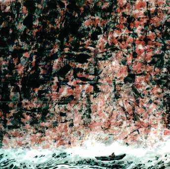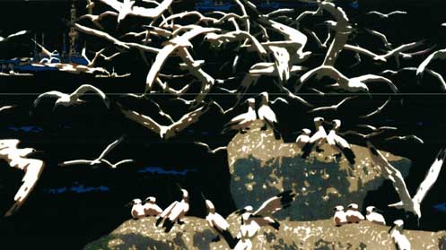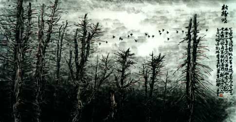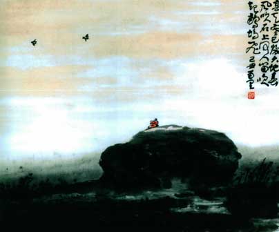 1979年,南京军区为了迎接全军和全国版画展,调我到南京搞创作。当时我脑子里一片空白,画什么,怎么画,完全没谱。我心里很急,整天苦思冥想,搞得很累很累。几天工夫,肝病就复发了,肝区又胀又痛,夜间无法入睡。估计GPT高上去了。我不敢到医院看病,怕被留下住院,不能进行创作。但有病不治又有生命危险。考虑到创作时限较长,不必急于完成。我采取每工作一小时就到室外练功半小时的做法,使创作和治病两不误。这样果然不错,症状一天比一天轻了。三个月下来,套色木刻《鸟岛》的创作完成了,肝病也治好了,肝区既不痛也不胀,用不着去医院看病了。