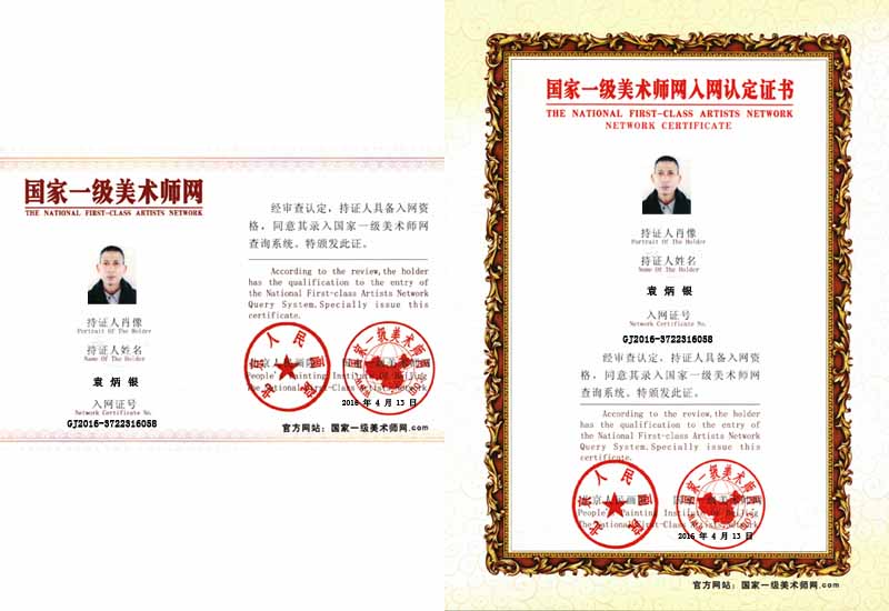 袁炳银,1938年出生,河南镇平人。中共党员。7至17岁跟父母在家务农,1956年(17岁)在镇平县应征入伍,在部队历任战士、班排连长、作战参谋、代营长等职。在部队期间多次受师团嘉奖,荣立三等功四次,被评为学习毛主席著作积极分子,出席国家召开的学习毛主席著作积极分子代表大会。受到党和国家领导人接见,并合影留念。转业后,一直在农业银行信用社任主任、经济师,多次被评为县级先进工作者,被军委授予全国优秀复转军人,参加建国55周年10月在北京天安门举行的庆典大会。1970年参加国家举办的新年座谈会(北京)并授予“全国道德模范”,并在《科技大报》等报上登名全国。2009年5月1日应邀参加全国劳动模范代表大会,受到党和国家领导人接见,并合影留念,获奖“五一勋章”和奖牌及荣誉证书。2009年10月1日应邀参加国庆60年大典和国家领导人合影留念,授予“全国行业杰出人物”称号,奖勋章锦旗及荣誉证书。系中国中外名人文化研究会高级会员,国家政策法规报社特邀记者,全国中老年代表,世界文化艺术研究中心理事,中国爱国者联合协会会员、授予爱国者荣誉勋章和称号,2010年元月应邀参加海内外社会各界杰出人士迎春联谊会,授予“当代楷模”称号,发勋章、证书,2010年5月1日应邀参加全国劳模代表大会,授予“全国人民英模”称号,道德模范,国家书画网首席顾问。