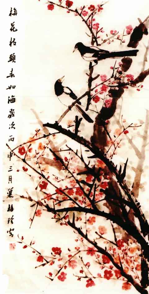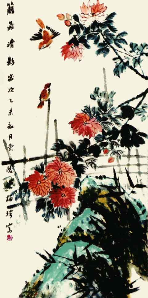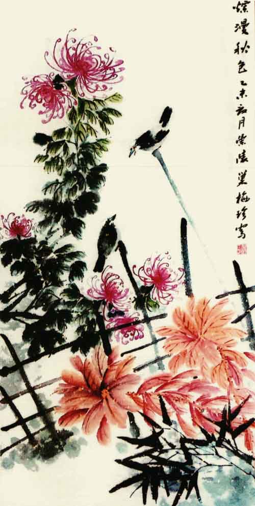 为了让有限的生命,创造人生有价值的精神食粮,退休后是自由支配自己的最佳时期,可以在精神家园的老年大学多门学科中,寻找自己的兴趣爱好门类,既能了却几十年来上大学的夙愿,圆大学梦想,又能不断充电更新智能,提升新观念,新技术、新经验,成为博学多能的精英人才,更可以把祖国的大好河山、繁华景象,用彩色的笔描绘出来,为后代子孙留点得意佳作。2003年开始我进常州、武进两所老年大学花鸟、山水班从初级班到提高班同时我又进书法、电脑班学习。十多年来,我临摹创作了数百幅花鸟作品。亲戚朋友到我家来看到花鸟画都很欢喜,到目前为止已有100多幅送给亲友了。14年来我仍坚持在提高班刻苦学习,进研修班深造,功夫不负有心人,虽不能说业绩辉煌,可称得上收藏颇丰,特别是花鸟画尤为突出,我要继续不懈努力,达到得心应手的水平。