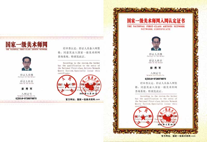 彭秀军,男,1945年5月生,土家族,大专文化,退伍老兵,湖南省龙山县里耶镇人。自1970年以来,从事土家族民俗文化采集、研究、写作40多年,涉猎文史、文学、摄影、收藏、书法、美术、剪纸等技艺研习,尤以字画剪纸为强项。2014年参加全国性书画大赛获金奖12次,2015年剪纸作品参加全国书画大赛,获金奖2次,2016年剪纸作品参加全国书画大赛获金奖3次;并首次发明了十二生肖(全套)剪纸模板,被授予“全国有突出贡献书画专家人才”及“中华书画艺术大师”两项荣誉称号。从艺40多年来,曾在《人民日报》、《中国文化报》、《湖南日报》等多家报刊发表各类文章百多万字,除了编著出版《迷城里耶》一书外,传略及作品先后收入《中国当代艺术界名人录》、《中华名人志》、《世界人物辞海》等15部大型书典,已获得“中华骄子”、“共和国之星”、“中华知名艺术家”、“世界华人杰出艺术家”等30多项荣誉称号。现系湘西作家、摄影家;湖南省民间文艺家协会会员、湖南省民族研究学会理事;中华民族文化促进会剪纸艺术委员会会员、中国艺术研究院文化艺术市场研究中心特约研究员、(香港)中国文人书法家协会顾问、深圳市艺海夕阳书画院签约书画家、北京六艺嘉韵书画艺术研究院院士、北京华夏国艺书画院客座教授、新加坡艺术协会特聘教授。