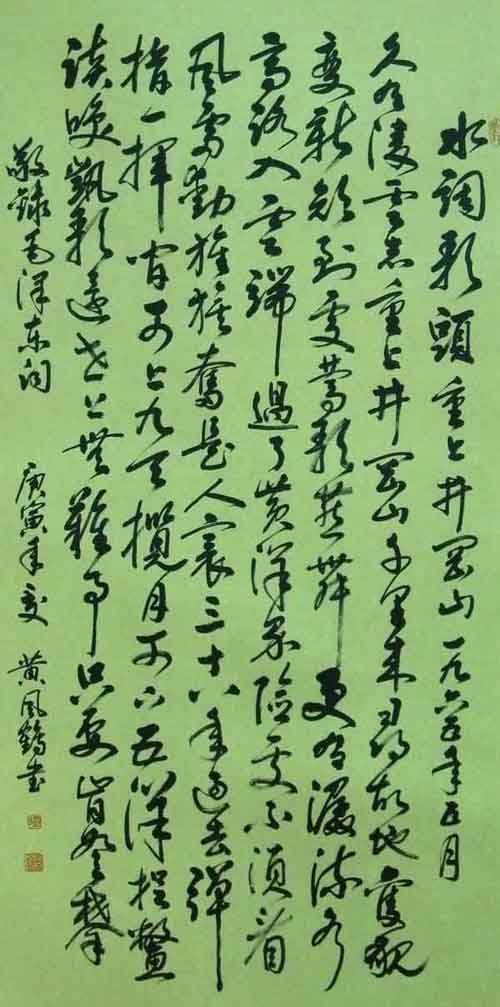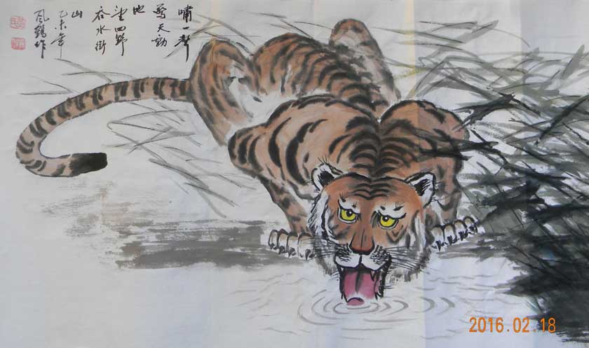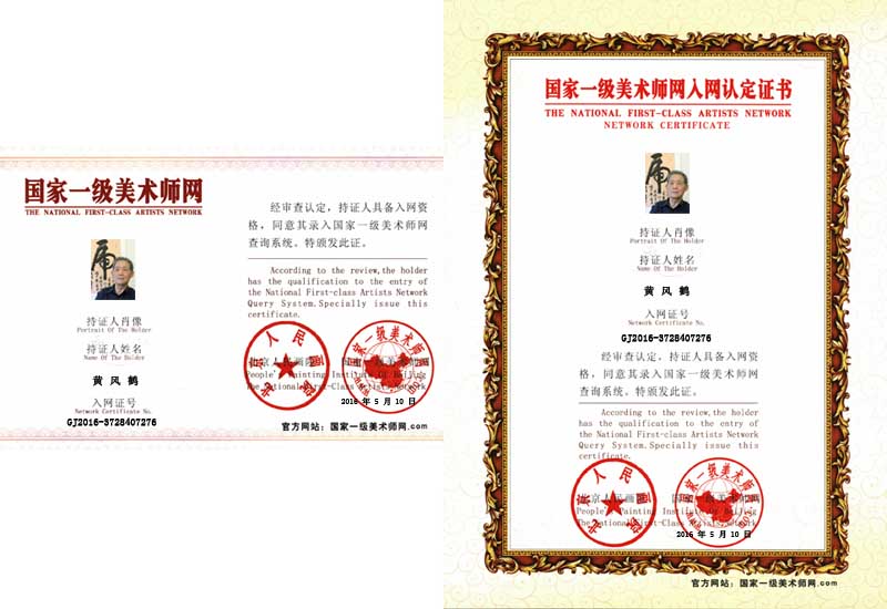 黄风鹤先生并没有上过专业艺术院校,书画完全是出于他的爱好。他自小酷爱柳公权、欧阳询、颜真卿的书贴,后来又学王羲之、黄庭坚、启功的书法,练就一手好字,书法作品灵动自如、浑厚洒脱、刚劲灵秀。1988年参加无锡书法艺术专科学校学习,1996年又被文化部艺术研究院招去培训,使他书画艺术如虎添翼。退休后学画,因有书法的基础,驾轻就熟,进步很快,从临摹古代名家山水入手,汲古创新,又苦练现代山水,在画到灵魂深处,往往不知有我,更无旁人。有时深更半夜突然起床画画,直到天亮。在镇江市国画院书画大师耿一林、卫廷栋先生的指导下,学习现代名画名作,在学习中不受形式上的羁绊,追求神似,把名家作品的神韵融入到自己的作品中来。