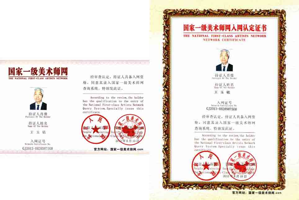 王玉铭,男,1936年7月出生,甘肃乐县人,中共党员,号墨乐,字碧亭,退休前原张掖地区水电工程局工会主席、机械工程师,现任青海省东方书法研修院院士(创作员),黄河文化艺术顾问,京都书画艺术研究院研究员,辽宁东燕洲书院高级院士。在1996年年底退休后,为安席晚年上老年大学三年,学习书画,由于自幼酷爱书画、初唐柳公权楷书、后取颜、兰亭序和二王行书、草书,后又学习篆隶、花鸟写意画,从多方面借鉴,并学习和研究当代书画名家墨迹,取众所长,其作品在全国各省大赛中多次获奖,几年来荣获金银铜奖、一二三等奖、优秀奖等30多次,作品入展入院。“庆祝建国五十五周年书画精品集”、“纪念抗日战争胜利六十周年书画作品集”,“中国文苑英华大系”,“当代中国名人名家书画集”,“洞庭风光全国书画大赛优秀作品集”,第一届中华诗书画印“四绝奖”大赛获奖作品集,“情系西部2003年中国书法家作品邀请展精品集”,“黄河杯书画名家作品集”,“白鹭杯中国书画名家作品选集”,2004年内蒙古国际草原文化节暨呼和浩特第五届昭君文化节,当代书画家邀请展作品集,纪念西安事迹七十周年中华书画艺术作品集,纪念香港回归十周年书画精品集、中华功勋人物大典(当代卷),世界名人录等。由于自己爱好书画艺术,勤于研修,师古不泥,大胆创新,反复锤炼,逐步形成了自己的风格。主张“艺术”原于生活,擅长观察思考、提练、升华、从平常的生活中挖掘素材、并获得创作的灵感,创作出大量为人称赞的好作品。取得了一定的成就,其作品山东图书馆,天津、加拿大等有人收藏,并出版了书画集二集,其作品雍容大器,古朴隽永、意蕴悠长,深受广大乃至国际友人的喜爱,被授予“当代优秀书画家”、“中华功勋人物”,爱国优秀艺术家,中华爱国艺术家,优秀书画艺术家,慈善书画艺术家,同时海峡两岸温哥华一级画师,民族文艺领袖人物,“成就奖”,毛泽东思想学术研究会在《为人民服务,共和国功勋颂扬毛泽东》卷书征文大赛中被评为一等奖。在新世纪全国人民奔小康的过程中,发扬光大中华文化,在文艺领域战线上,始终坚持艺术的创作的先进性,把握文化的主流方向。在文艺交流研究方面更要做出应有的贡献。