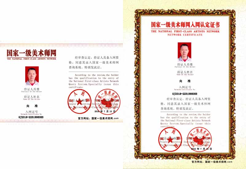 向准,男,1958年6月出生,祖籍湖南邵阳,大专学历。号三明居士。向准对中国传统文化一直怀有浓厚兴趣,多年来研习书法、国画不辍。对草书尤其喜爱。在历次全国性书画大展中,书法作品九次荣获金奖,国画作品二次荣获金奖;被授予“全球书画五百强”“中华书画交流大使"“中国廉政文化先锋人物”“2015德耀中华,最美书家”“中国红色书法艺术名家”“中国红色书画名家”“中华杰出书画家”“杰出功勋书画家”等荣誉称号。作品入编多部典籍。现为中国书法院特骋书法家、国画家。