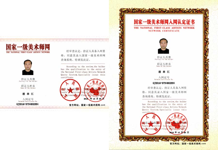 潘奉江,生于1963年,16岁师从于著名画家赵丁,毕业于哈尔滨师范大学美术系,后在黑龙江省延寿文化馆工作,1991年加入《新华信息报》任美术编辑,2000年,在《半岛都市报》、《招商周刊》、《中国都市》杂志社工作,后从事国画创作工作至今。擅长画人物、山水、花鸟。代表作品《人民的好总理》《县委书记焦裕禄》,2010年10月他的两幅作品,《菊花图》和《金鸡图》被美国前国务卿奥尔布赖特收藏。
