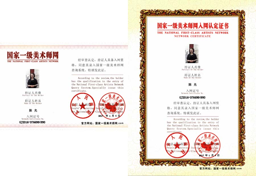 陈光,女,书画名,林子,生于1960年, 湖北武汉人,现居住香港。1986年毕业于武汉江汉大学美术系,国家一级美术师. 北京人民画院院土, 中国国画院院土,中国书画家协会会员,中国翰林书画艺术院院土. 研究员 ,中国美术研究院副院长等。