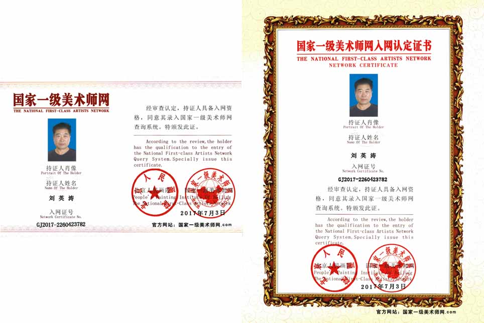 刘英涛:1958年生于河北深州,早年师从崔爱民,王凤立等多位老师,学习绘画。2016进修于中国人民大学画院高研班;2017年为清华大学美术学院著名画家赵金工作室专职画家。 现河北省美术协会会员;深州市美协理事,国家一级美术师;现居北京。国画作品多次参加国家级,省市大型艺术作品展览并获奖,作品被有关机构及国内外友好人士收藏。