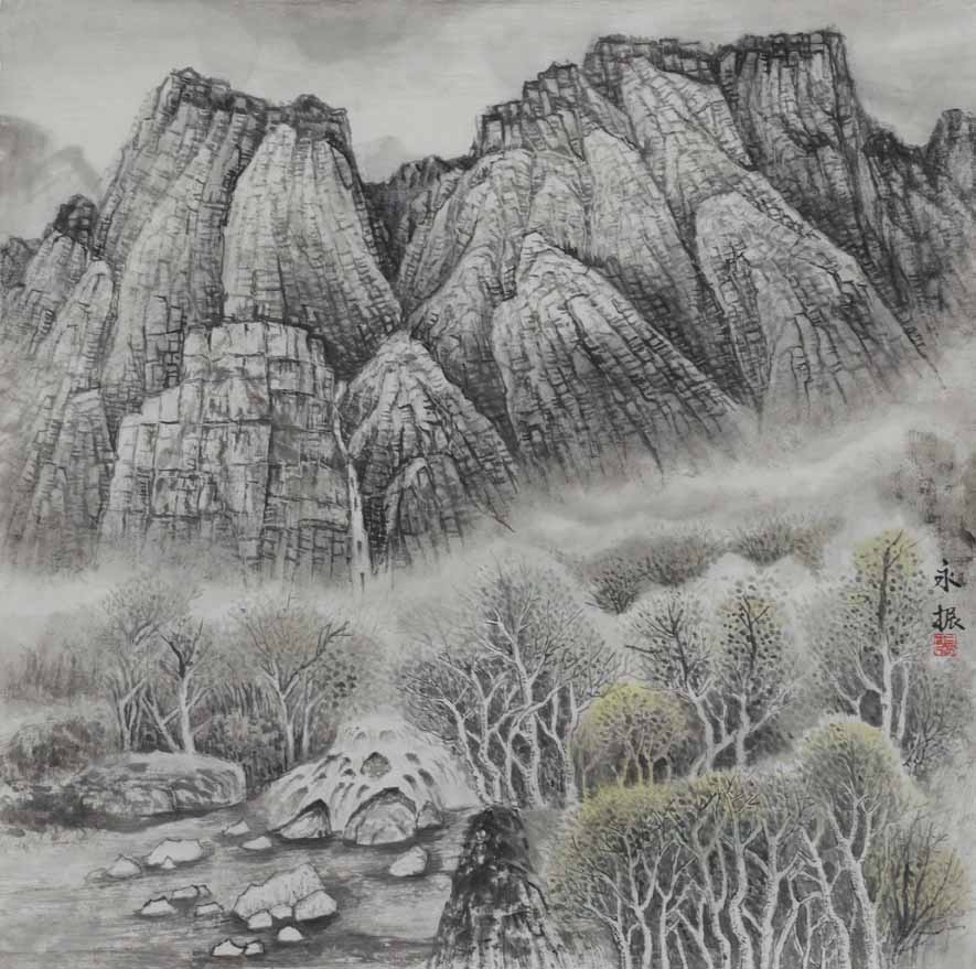 张永振,1957年生于河北深州,自幼酷爱绘画,早年师从崔爱民等多位老师,学习山水画。2016进修于中国人民大学画院高研班;2017年为清华大学美术学院著名画家赵金工作室专职画家。现衡水地区美术协会会员,现居北京,国画作品多次参加各级艺术作品展览并获奖,作品被有关机构及国内友好人士收藏。