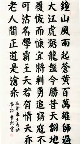 张云彩,1945年生,山东淄博人。淄博市博山区教育部门退休。淄博市老年书画学会会员,中国书画研究院会员、院士。书法参加全国展赛,曾获:特别金奖、特等奖、一等奖、优秀奖等。被授予“中国书画百杰”、“当代中国艺术名家”、“榜样中国•中国知名文艺名家”等荣誉称号。作品及传略入编《中华百年国粹》(1911~2011),《中华国粹人物年鉴》(2001-2011),《中国书画家大典》等辞书。