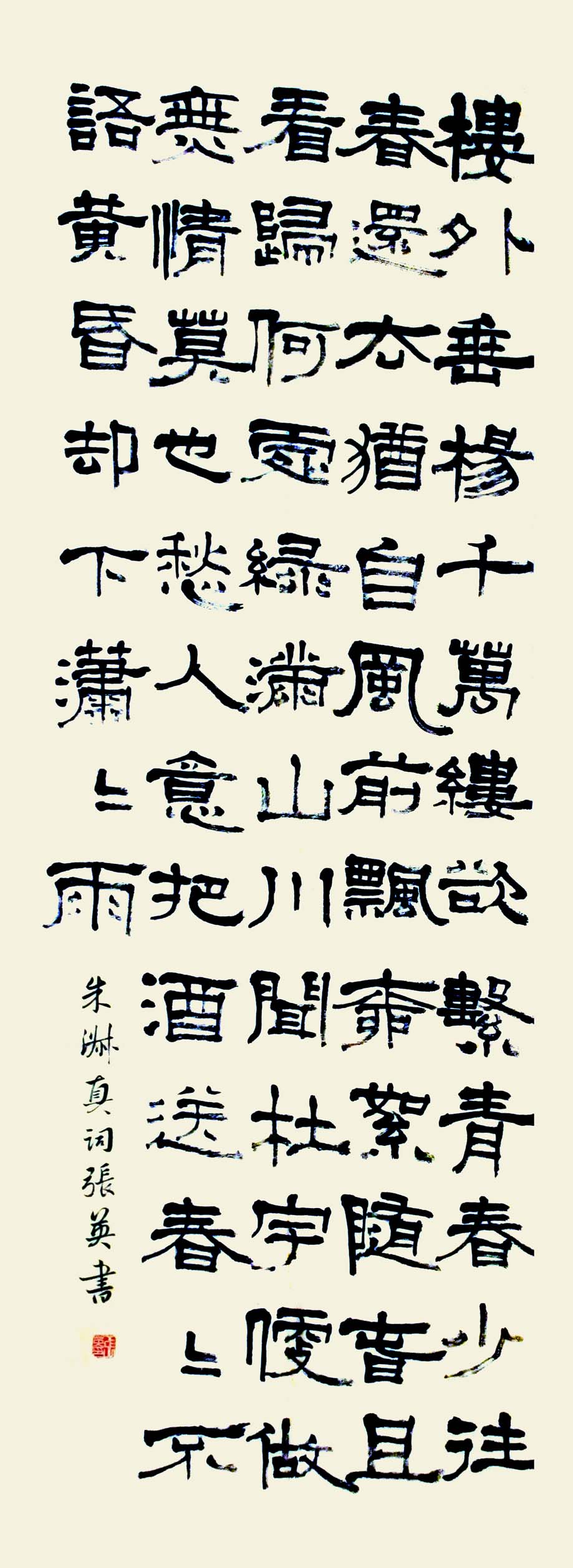 张英,女,别名:白岚,网名:清风雅韵,汉族,1958年7月生于常州,本科文化,常州市书法家协会会员,常州市女书协理事。自幼受父辈影响,爱好书画、诗文、音乐,对篆、隶、楷、行各书体皆有涉猎,尤其擅长篆书和隶书。曾多次参加公安系统省部级书画展并获奖;多幅篆书作品为香港、台湾、日本、等中外友人收藏。