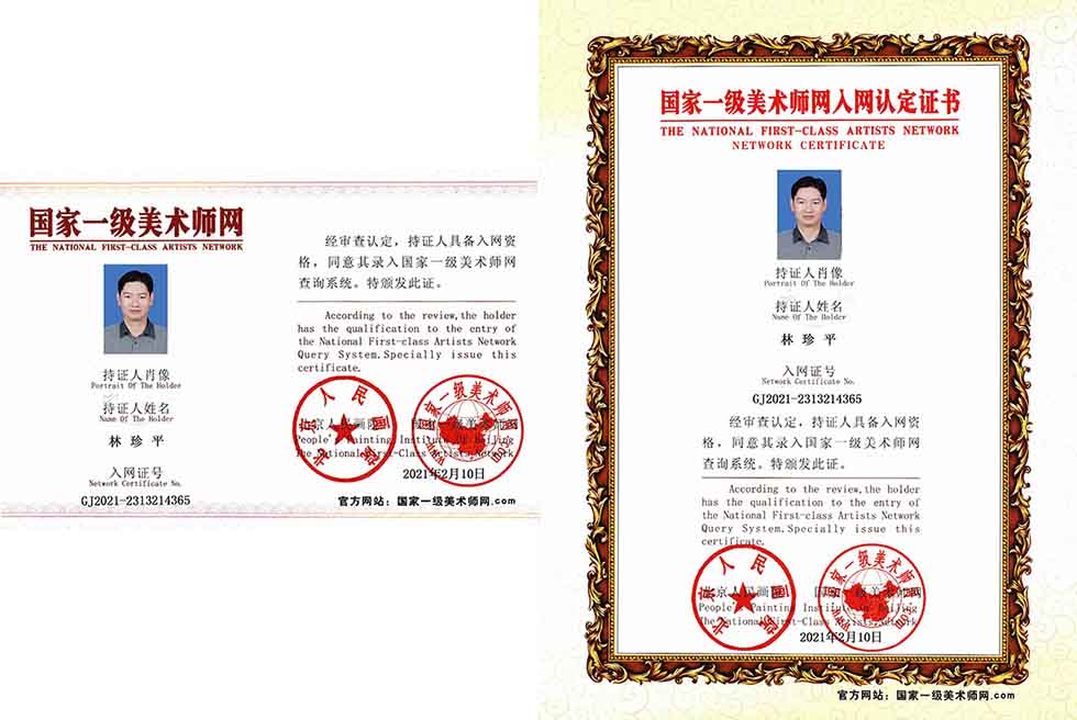 林珍平,1971年生于福建福清。现为国家一级书法师,中国书画家联谊会会员,中国硬笔书法协会会员,福建省书法家协会会员,福清市书法家协会副主席,福建省硬笔书法家协会副主席,福州市硬笔书法家协会副主席,福清市硬笔书法家协会主席,福州烟山画院特聘书法家,福清市政协书画院书法家,福建逸仙艺苑书法会研究员,福清市政协委员。早在上个世纪90年代以硬笔书法领秀书坛,著名书法家崔学路及已故书法名家中国楷书之王姜东舒对其书作给予较高评价,《中国钢笔书法》杂志数期专题介绍。毛笔书法及论文刊登于《书法报》、《当代书画》等权威性报刊杂志,1997年获中国书法家协会与解放军总政治部联办的“华天杯”电视书法大赛优秀奖,全国临书名品大赛金奖等多次奖,书法作品曾展于中国美术馆,被中国革命博物馆收藏,简历作品编入《福建书法作品集》、《中国书画篆刻家年鉴》等典籍,福清电视台、福建电视台专题采访报道;作品流传于美国、日本、德国、印尼等地,并刻于院校假山、石竹山等名胜景区。