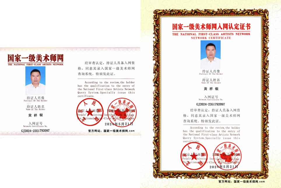 黄祥银,男,浙江省苍南县人, 国家高级工艺美术师、中国工艺雕塑大师、中国美术家协会会员、省级美术家协会会员!温州市美术协会副会长!苍南县美术馆馆长!浙江省日升雕塑有限公司董事长!温州市恒源古建筑有限公司董事长! 25岁参加工作,各大寺庙雕塑佛像。通几年在实践工作中学到了大量的造型、雕刻、彩绘全方位的庙宇建造技能与艺术集累了成熟经验和本事,自己成立日升雕塑有限公司,完成了几十家大小不同的寺庙建设,荣获了八项高水平的佛像造型艺术大奖,作品在国际和国家级大赛中多次夺冠,博得有关领导和艺术界的高度关注。在雕刻艺术上取得了杰出成就,为国家争得了荣誉。并获得省级、国家级的金、银、铜牌奖,受到了国家宗教事务局的表扬和奖励。