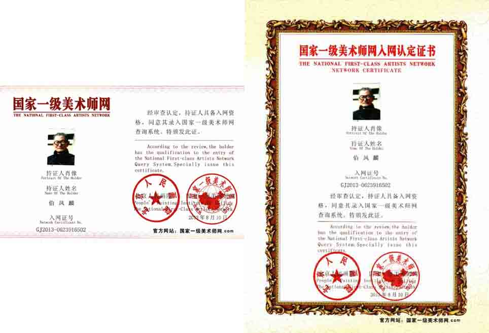 伯凤麟,笔名鲁放,号巴山松,河北沧州市人,满族,1933年11月生,西安外国语大学毕业。国家书画艺术家资格认证中心副主席、评审委员,中国国家专业人才协会艺委会委员,北京东方神州书画院院士、一级书法师,世界华人书画艺术家联合会顾问、高级书法师,中国书画院上海分院会员,(香港)中国文人书法家协会会员,济南稼轩诗书画研究院研究员。由国家专业技术人才职业资格认定委员会评定为“高级书法师”。由中国书画家职称及润格审定委员会及香港国际艺术品拍卖信息中心评定为国家一级美术师。