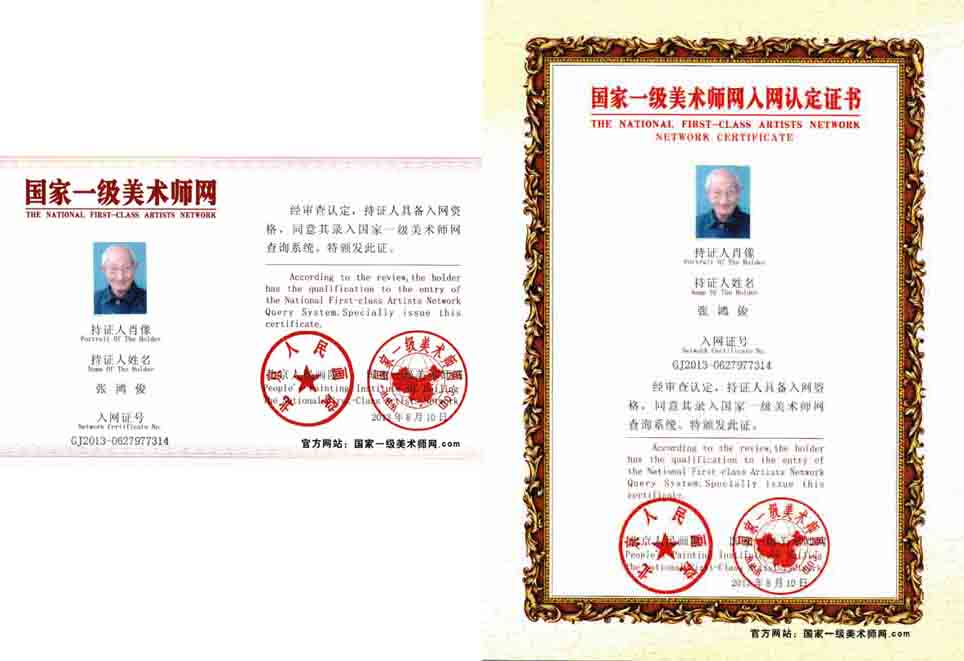 本人书法以楷、行见长,并有所创新——张体与胖颜体。2007年在中国当代艺术协会聘任副主席,文化部评为书画功勋人物。嗣后聘为中国民族艺术家协会副会长。由中国书画艺术家协会、中国书画家学会、中国书画研究会八个单位表彰为人民功勋艺术家。2010年聘任为东方文艺奠基人,这年又聘任宋庄国际书画院终生院长,最近终为文艺百年传世人物。