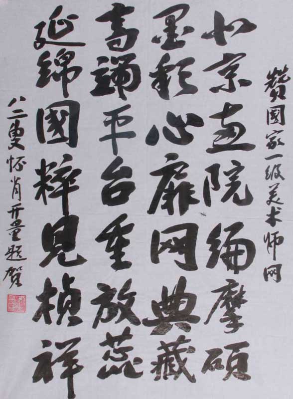 肖开量,1931年生,湖南芷江县人,1949年10月参加中国人民解放军四野47军湘西军政干校革命,中共党员。退休后,缘结翰墨毓晚情,喜将和谐盛世谱新词。现为中国当代艺术名家、国家一级美术师、湘西自治州诗词楹联学会、中华诗词协会、中国国际书画艺术家协会会员、被聘任中国当代艺术协会终身名誉主席、中国国家书画院副院长。曾多次投稿参加全国性的北京奥运会、上海世博会、广州亚运会、神舟载人飞天、纪念毛泽东、刘少奇等革命老一辈诞辰百年,诗圣杜甫、欧阳修、兰亭序问世千余周年诗书画大赛活动获奖。作品被有关单位编入中国传统文化系列经典。向各大权威图书馆、各地高校图书馆赠送馆藏,或网站上宣传。至今著有《苍松诗词集》、《红岗碧翠古诗词暨新诗歌集》。《新中成立60周年诗词楹联集》,2009年岁月文学杂志社主办,大庆市报刊发行局向全国公开发行,国家图书馆收藏。2012年自编《书法作品(第一期)——向十八大献礼》。