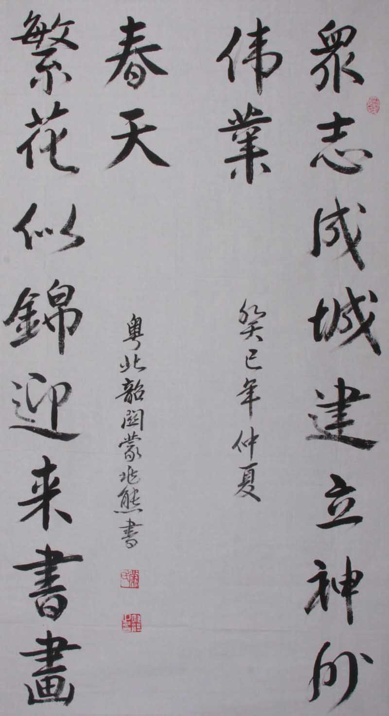 蒙兆熊,1944年7月生,广东韶关市人,结业于山东文化艺术研究院书法专业研究生班,荣膺“中共十八大题贺名家”荣誉称号。中共中央组织部党建研究室授予“优秀干部”称号,国家“一级美术师”称号。(其余略述)