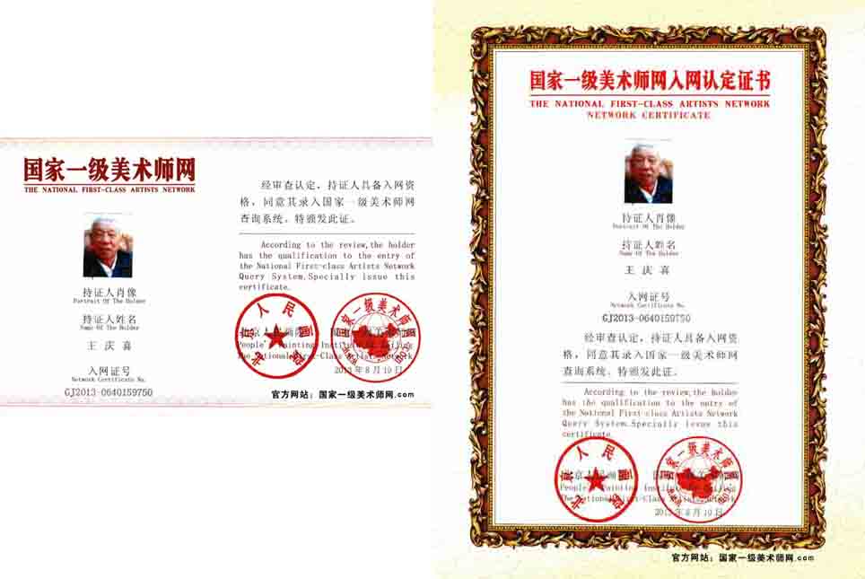 2011年7月26日北京中国国家书画院通知关于授予王庆喜同志“爱国主义艺术家荣誉称号”。