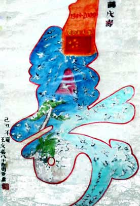 1992年第三届艺术在云南省昆明市召开作品“八仙庆寿”参加大联展发给证书证章后山东省发行福寿专刊被编入画册。