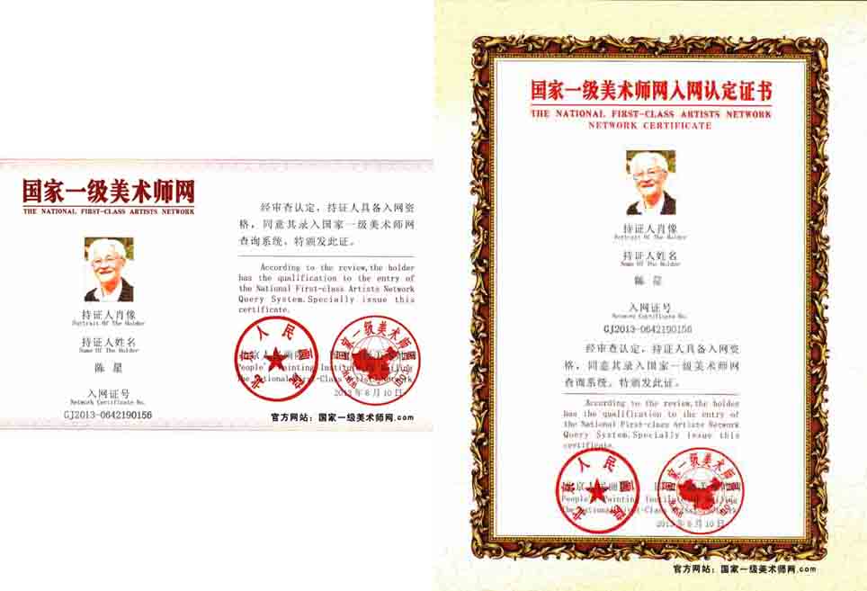 陈星,号罹翁,生于1925年,西安蓝田人。毕业于中华艺专。于西北农学院就读时投笔从戎,血洒抗日战场!胜利后任教于贵阳中学,创办《时代影剧》,因宣传进步思想遭国民党当局逮捕。解放后,响应党的号召支援甘肃林业建设功绩卓著。1957年被错划右派,锒铛入狱。1979年平反出狱。又在十年上访中失去左下肢致残终生。之后奋笔书画,其作品曾在国内外展出;现为中国国际书画艺术协会理事、中国书法美术家协会理事、甘肃省诗书画联谊会顾问。并受聘于十多家艺术团体任教授、院士等职;荣获中国艺术研究院授予的“文艺之星笔墨之神”和“世界书画艺术名人”等称号。传略入编20余种辞书。生平疾恶若仇,广行善事荣获“中华慈善贡献奖”。为甘肃省慈善总会特邀理事。主张作画先作人。出版有《陈星画选》《陈星画集》《千里洮河图》和纪实文学《岷山洮水间》《风雪人生》等。他乐于助人,广行善事。广播、电视、报刊多有好评。他现已年及耄耋仍孜孜不倦地拼博在人心向善的旅程中。
