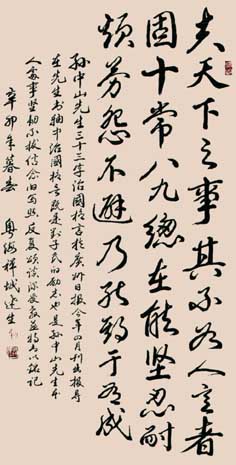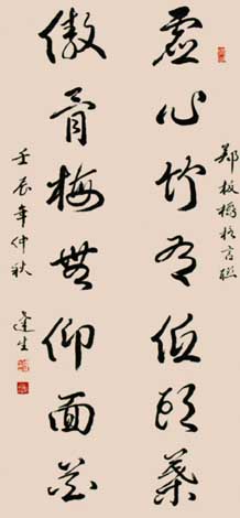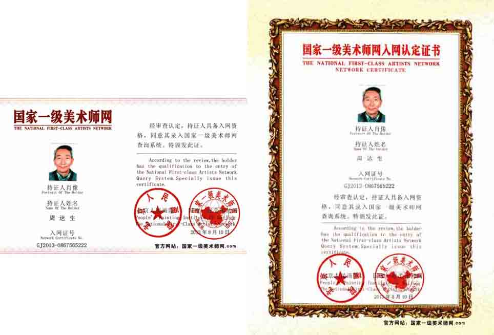 周达生,1930年生,昆明人。1958年东北师大语言文字研究生毕业,大学教师。中国文化艺术协会终身名誉会长,北京宋庄国际书画陆家终身院长,中国书法艺术研究会副主席,中国国礼艺术大师协会特邀委员,香港中国艺术家协会荣誉会长,中国国学研究会研究员,世界多元文化促进会华人书法家协会理事,中国诗书画出版社社长。作品在全国书画大赛中获金奖六十余次。