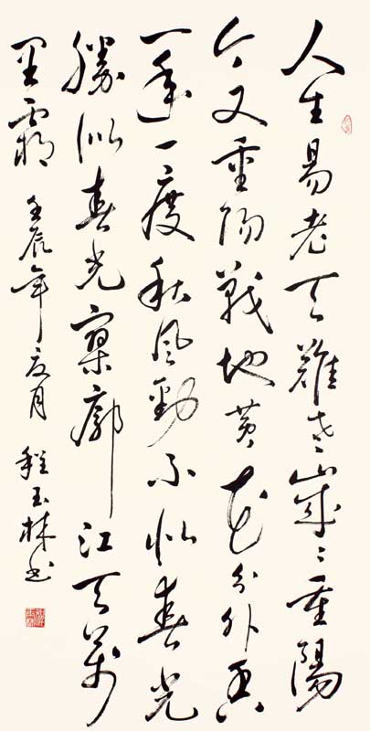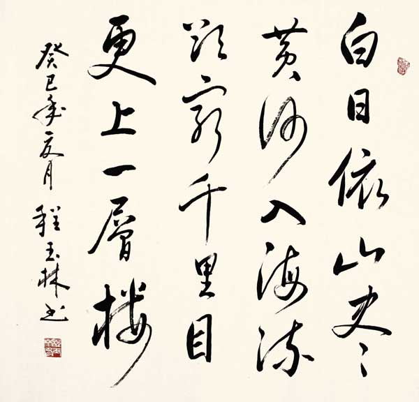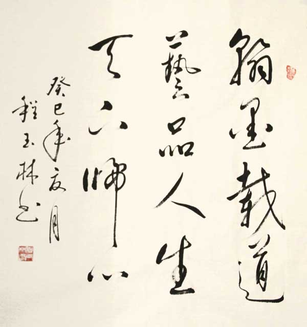 程玉林(1957年4月生—)男,甘肃省宁县人,大学文化。自幼酷爱书法,初习颜楷,遍览古今名家帖本,刻苦研习,书艺渐进。其书法作品在继承、吸收传统书法艺术精髓的基础上,追求遒劲秀丽,自然洒脱的书风。以楷书、行书见长,兼攻草书和汉隶,书体俊逸洒脱,钢毅奔放。其书法作品多次参加全国书法展,并被收藏或获奖,多次获得金奖、银奖或铜奖。先后被吸收为中国民族硬笔书法家协会会员、中国当代硬笔书法家协会会员、中国当代师生书法家协会常务理事、中国新长征民族文化艺术传播中心客座教授、中华当代书画艺术研究会名誉教授、国际美术家联合会中韩文化艺术专家委员会委员、国际美术家联合会会员、陕西省老年书画学会会员、泾渭书画艺术研究院理事、长庆石油书法协会会员。
