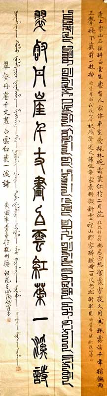 格吐肯,字山人,又字阿林,男,锡伯族,中国当代著名书法家、作家,1944年12月出生,新疆察布查尔县人。自幼酷爱书法,初学二王,后临颜、柳、欧、赵。广集博采,兼收并蓄,脱旧出新,独树一枝。上世纪七十年代初,以汉文书法点画特点创造了锡、满文楷书、隶书(八种字体)、草书、篆书(八种书体)。从而形成了锡、满文、正、草、隶、篆书法体系。上世纪七十年代又创造了锡、满书法——“松魂体”、“烟云体”、“松烟体”(多见格先生创作的百龙、百虎)。同时又创作了汉、锡、满合璧、二十二体、十八体、十体、六体、四体书等,这是中国书法史上的创举。欧阳中石对其书法艺术是这样评价的:“作者是位有思想、有内涵的书法家!其格体书法,字字有法,笔笔有由,墨妙字精,纯熟自然,灵活多变,其书体创造了历史,自成一家!”出版著作有长篇小说《眼泪与露水,叙事长诗《孤女沉怨》、《格吐肯书法集》、《格吐肯书法新作》、《中国实力派名家十杰格吐肯书法集》、《满汉辞典》、《甲骨文简明字典》,合著有《锡汉辞典》。2004年,察布查尔锡伯自治县政府出资建立了“格吐肯书法艺术馆”。2010年格吐肯的锡伯文、满文书法列入新疆和乌鲁木齐市两级非物质文化遗产。