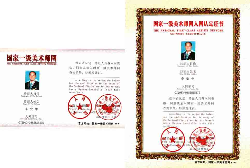 李安中,男,汉族,湖南嘉禾县广发乡,楚江村人,斋号[溯源斋],1940年9月出生。九岁丧母,父眼残失业早丧,与老祖母相依为命,十岁失学务农,郴州市美协、书协、诗词协会会员,东方艺术研究院终身名誉院长、画圣吴道子艺术馆理事、中国书画艺术委员会会员、中国文艺协会会员、中国国学研究会研究员、中国书法美术家协会理事、中国书画艺术家创作中心高级书画师、中国国际文艺家协会名誉理事、中国国际书画艺术协会会员、世界华人交流协会会员。熟悉航空(卫星)照片的判读与实地对照调绘绘图、制图等。