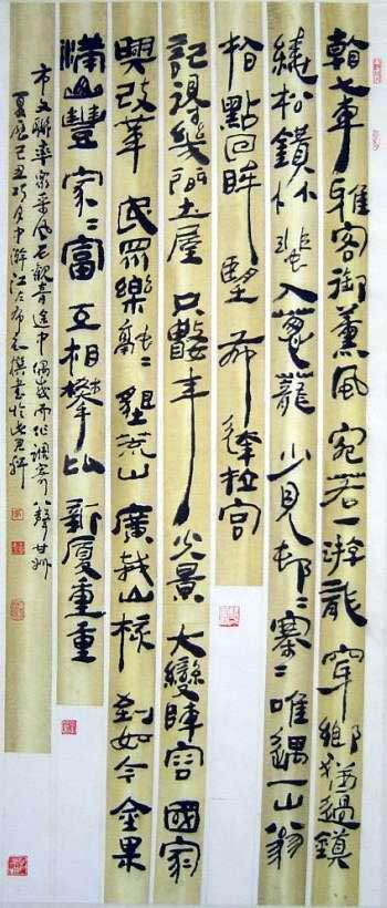席金钟,现名竟钟,笔名席卷、江布江衣席金钟,现名竟钟,笔名席卷、江布江衣等。祖籍湖北,1937年生于皖南,高级工艺美术师、联合国美术家协会会员、中国工艺美术学会会员、中国工艺美术家协会会员、中华诗词学会会员、中国美协安徽分会会员【1985】、中国书协安徽分会会员【1983】、安徽太白楼诗词学会理事、中国书法艺术研究院艺委会前理事、世界禅佛书画家协会理事、国际美联会员兼中韩文化艺术专家委员会委员等。自幼喜好诗、书、画、印,书法初入唐楷,转临诸家碑帖,兼习篆隶、简牍、契文之体;绘画初习《芥子园》。在校期间,师从张贞一学西画、彩墨、雕塑、水彩等项。改革开放后,夜耕不辍,苦补蹉跎,常融画法入书、书法入画,善用卷云、解索、披麻等写法写狂草;篆刻试用三维法集冲切、动静中、两体书法入一印,以破朱白合印平面分割之例。作书讲究法度和运笔,为人注重学识与修养;画画力求形神兼备,中西合璧,古今对话。所作潇洒流畅,跌宕多姿,清新自然。作品入选国内外展览,曾获过金奖、银奖、特等及优秀、成就等奖项,刊载内报刊或为国内外团体及个人收藏、已入编《中国当代美术家大辞典》、《中国现代书法界人名辞典》、《甲骨文书法艺术大观》、《甲骨文书法艺术论文集》、《中国美术家年鉴》、《当代诗词家大辞典》、《华夏吟友》、《中国艺术界名人名作博鉴》、《世界当代著名书画家真迹博览大典》、《百年中韩书画名家大师精品大典》、《近五十年寰球汉诗精品》、《廿世纪词苑大观》、《鑫光杯迎澳门回归中国画精品展作品集》、《建国五十周年华人画家诗人书法家大奖展览典藏集》(获成就、优秀两项奖)、《中国当代篆刻艺术大观》、《廿世纪中日书画名匠集》、《中国书法、中国美术》、《现代中国绘画》、《现代中国书法》、《中国名家艺术》、《中外画刊》、《中国书法全集》等几十部(诗、书、画、印)典集。1984年首创,<立体竹画>问世,同年参加全国工艺美术展。等。斋名