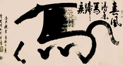 书法《马》,给人一种坚强、力量、积极向上、勇往直前的拼搏精神。