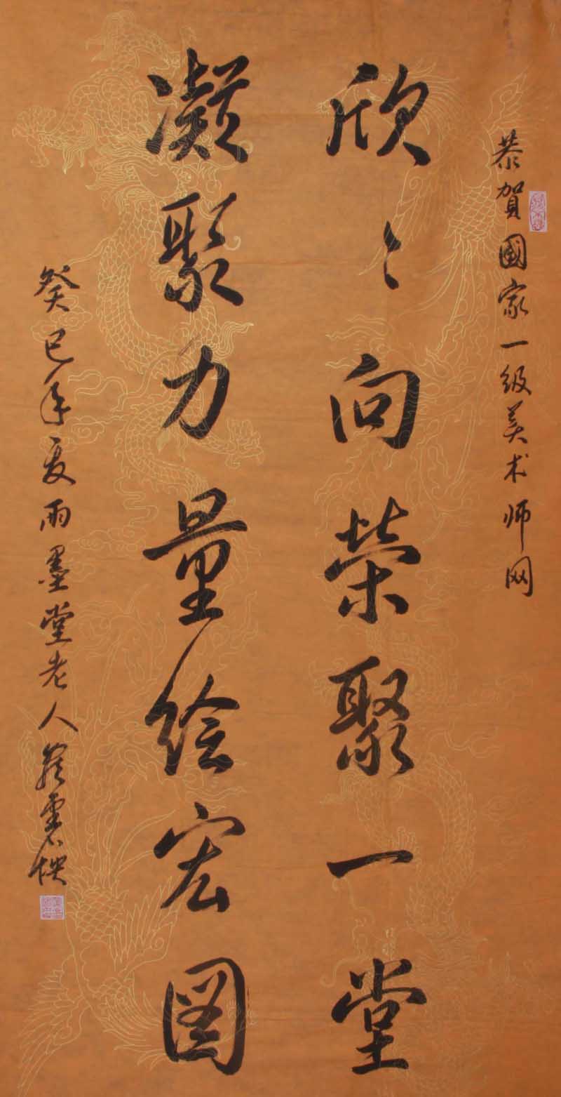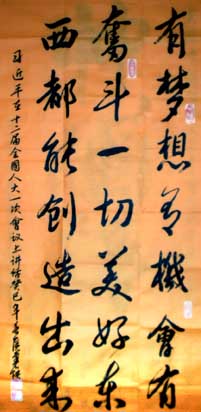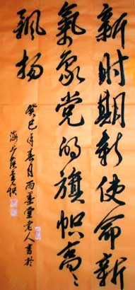 侯金焕还钟情于毛体书法,认真学习毛泽东书法艺术,他的毛体书法吸取了毛体精髓,结构、章法均达到炉火纯青地步。更令人钦佩的是,侯金焕3年前在所住社区免费教授书画。愿他艺术之树长青!